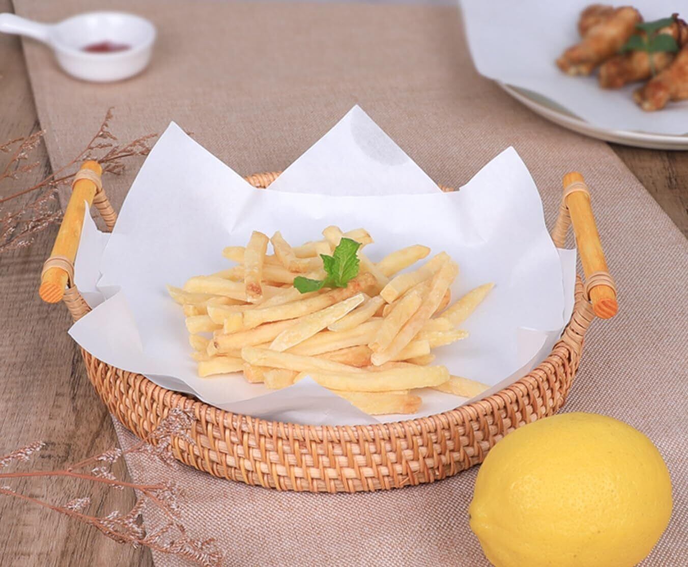 この天ぷら敷紙は、270x250mmの大判サイズで、大皿料理にもぴったりです。家族や友人との集まりでの揚げ物盛り付けに、スムーズに対応します。
