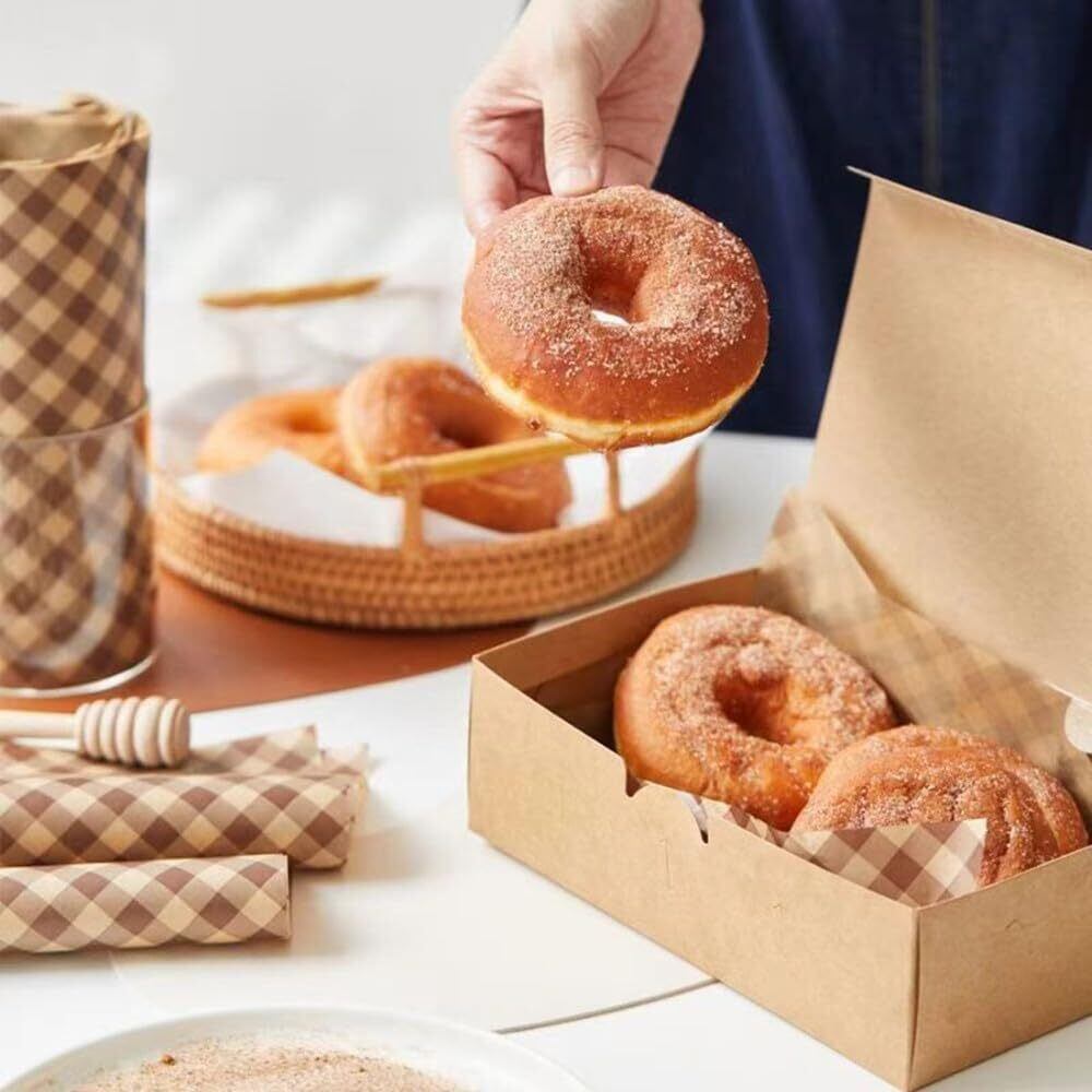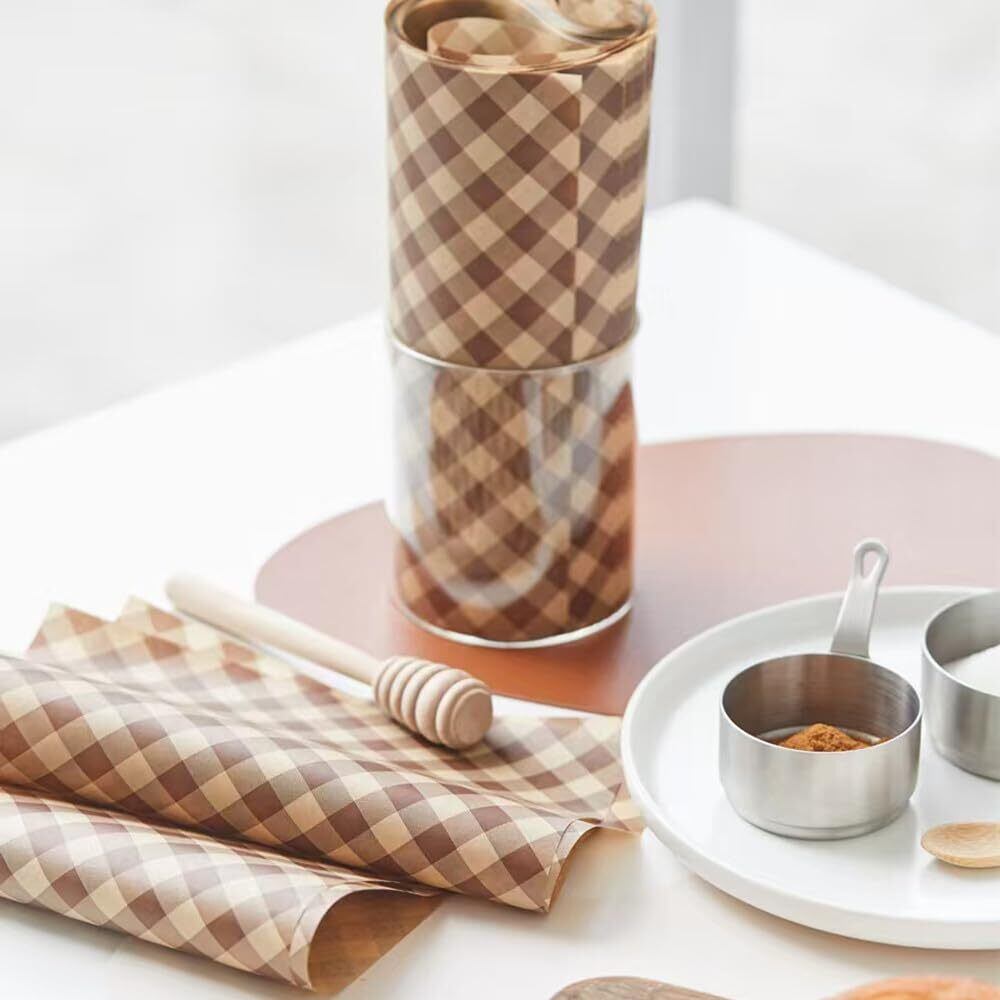 とても可愛らしい、コーヒー色の格子柄が印刷された耐油ワックスペーパーです。