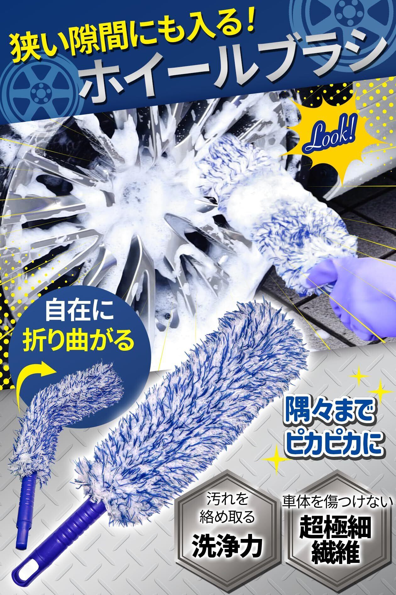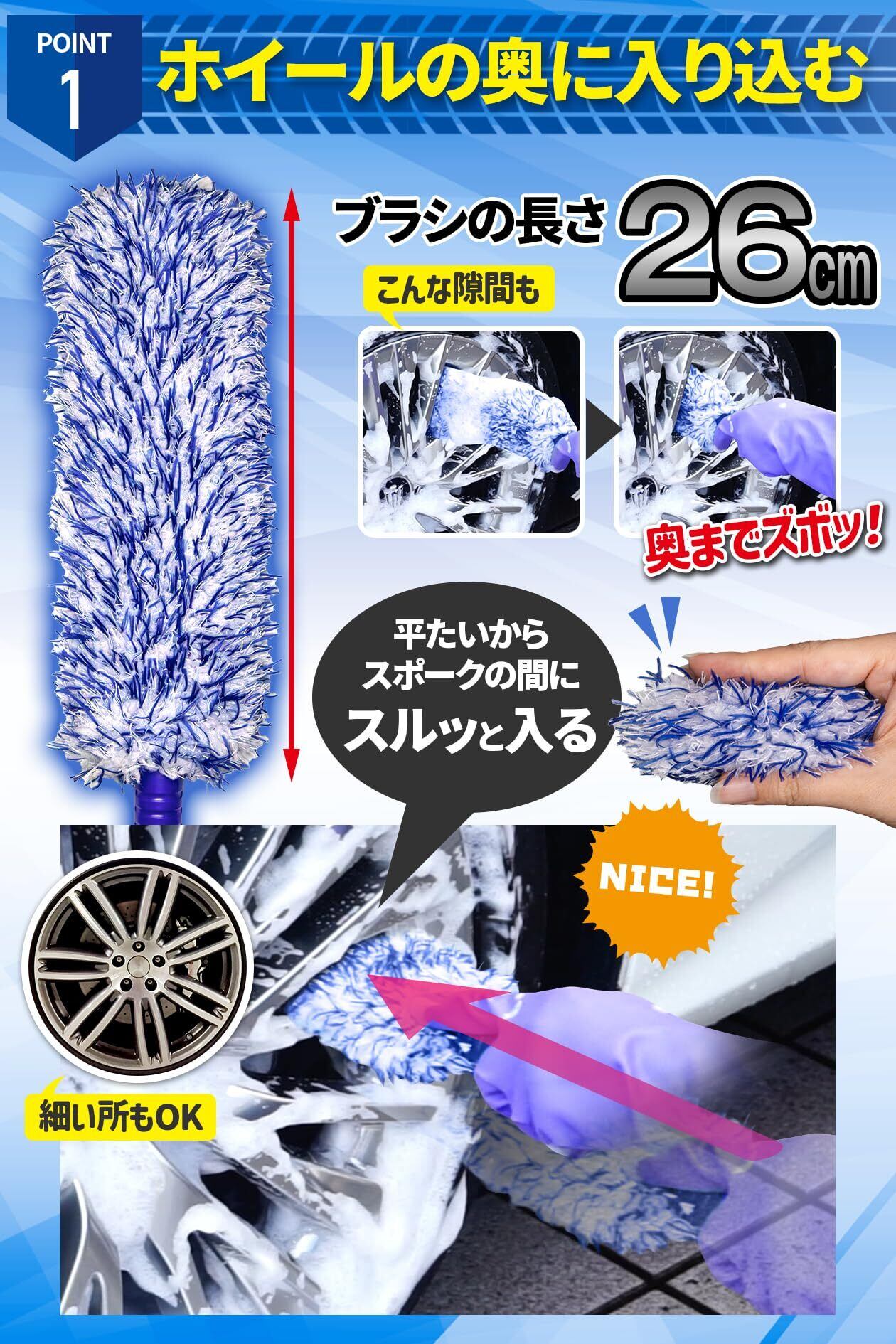マイクロファイバー素材で傷つけない・泡が飛び散らない ホイールブラシ 洗車ブラシ ホイール 洗車 ホイール用 タイヤブラシ 洗車用品 傷つかない 柔らかい ディテールブラシ