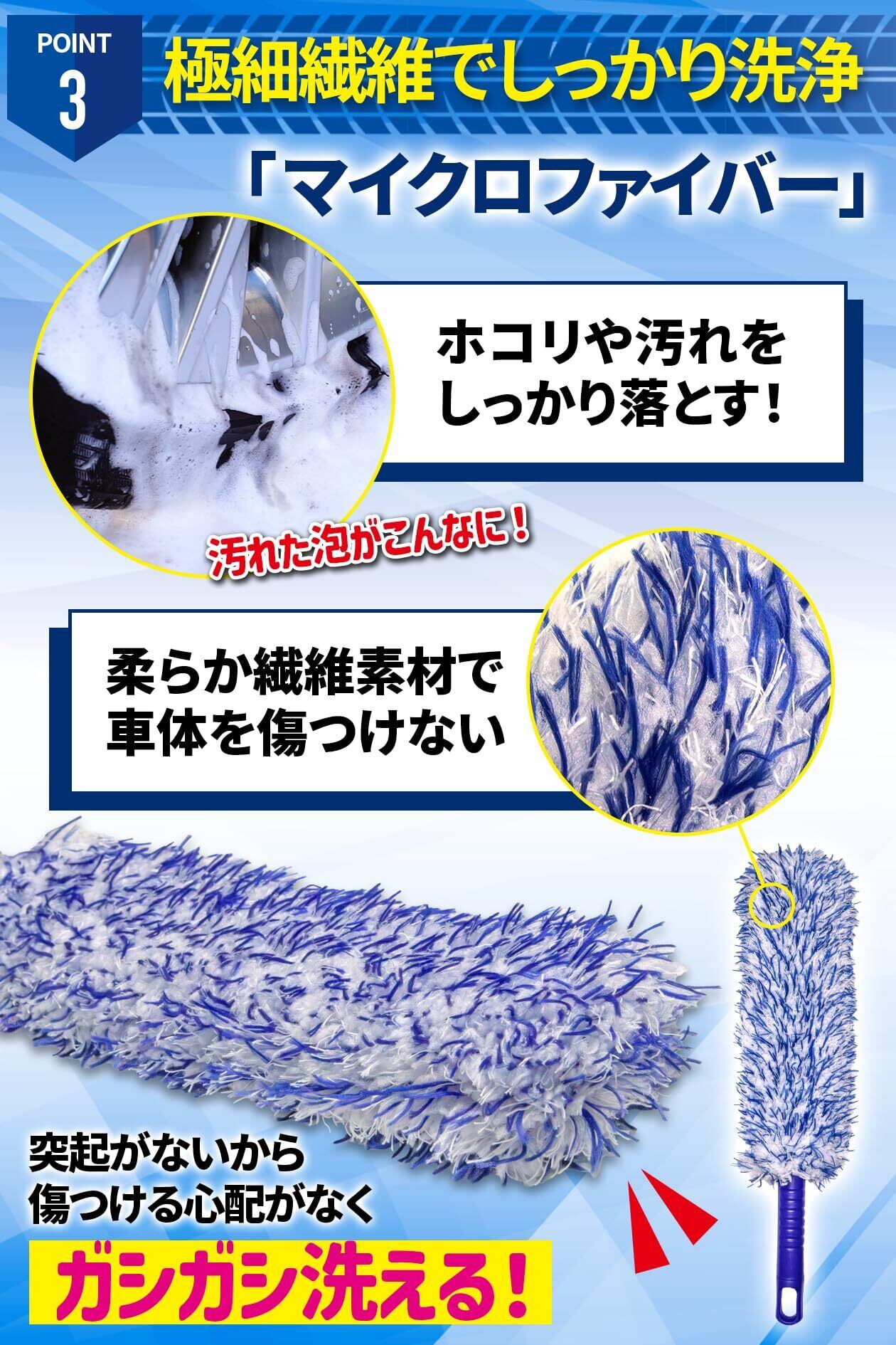 【マイクロファイバーをメイン素材に採用】細かなホイールの汚れまで簡単に落とせるマイクロファイバーを素材に採用したホイールブラシです。柔らかく極細繊維を使用しているためホイールの表面の微細な傷を防ぎながら丁寧に汚れを落とすことができるため、セルフ洗車でも安心してお使いいただけます。
