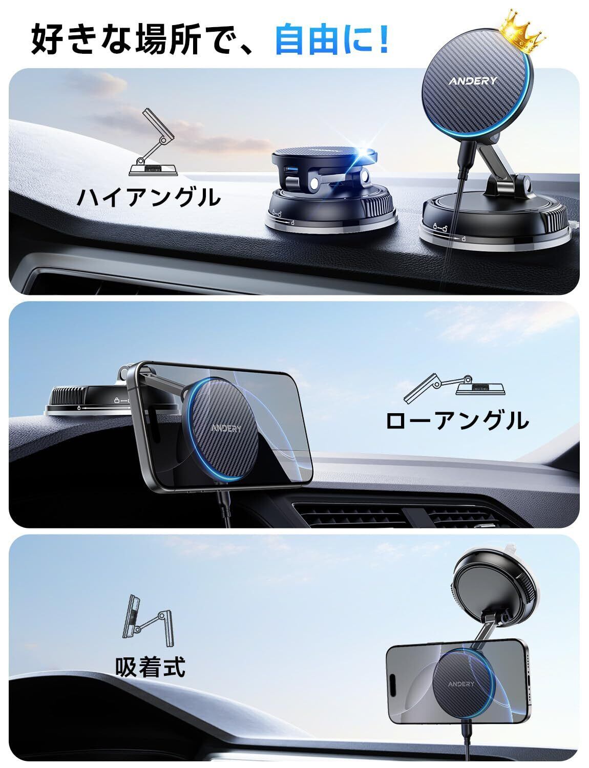 【革新デザイン!15W急速充電+真空ゲル吸盤+超強力磁力、車載スマホホルダー登場】ANDERY開発チームは、お客様の声に応えて大ヒットモデルの車載ホルダーを全面進化させました!新モデルは15W急速充電に対応し、業界初のデュアル入力ポート設計で充電方法がさらに便利に。スマホホルダー 車 ワイヤレス充電はQi認証取得の純正チップを搭載し、スマート温度制御機能で、75%の高効率変換を実現。従来の車載充電器と比べて充電速度が2倍以上向上し、iPhone16シリーズを含む全てのスマートフォンに急速充電が可能です。さらに、ダブルコイルと1:1精密配置の磁気リングで充電安定性を大幅アップ。スマホのバッテリーを保護しながら、充電が途中で切れる心配もありません。真空ゲル吸盤と超強力磁石の組み合わせで、どんな路面状況でもスマホをしっかり固定。忙しい生活の中で、迅速かつ効率的な充電体験を提供し、生活をより効率的で便利にします。