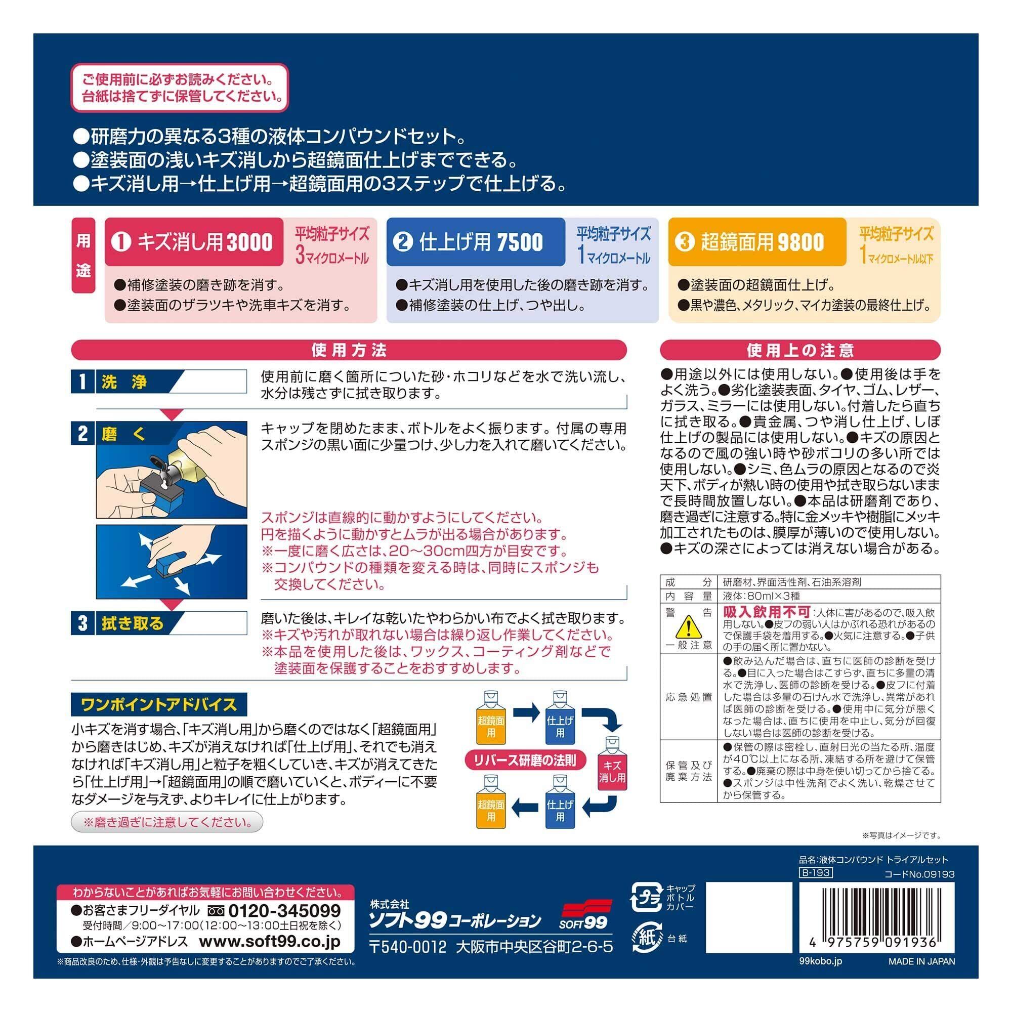 ソフト99(SOFT99) 99工房 補修用品 液体コンパウンドトライアルセット 塗装面のキズ消し、仕上げ、鏡面仕上げ用 専用スポンジ 09193