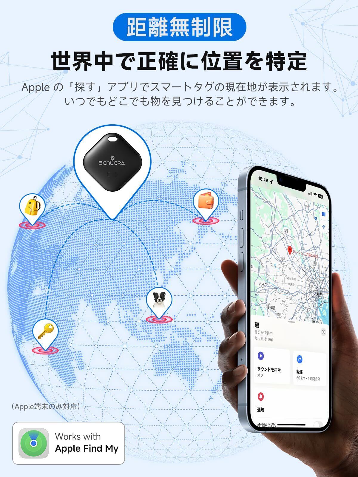 Benlera エアタグ 紛失防止タグ スマートトラッカー【業界最小型&GPS全球超強信号】