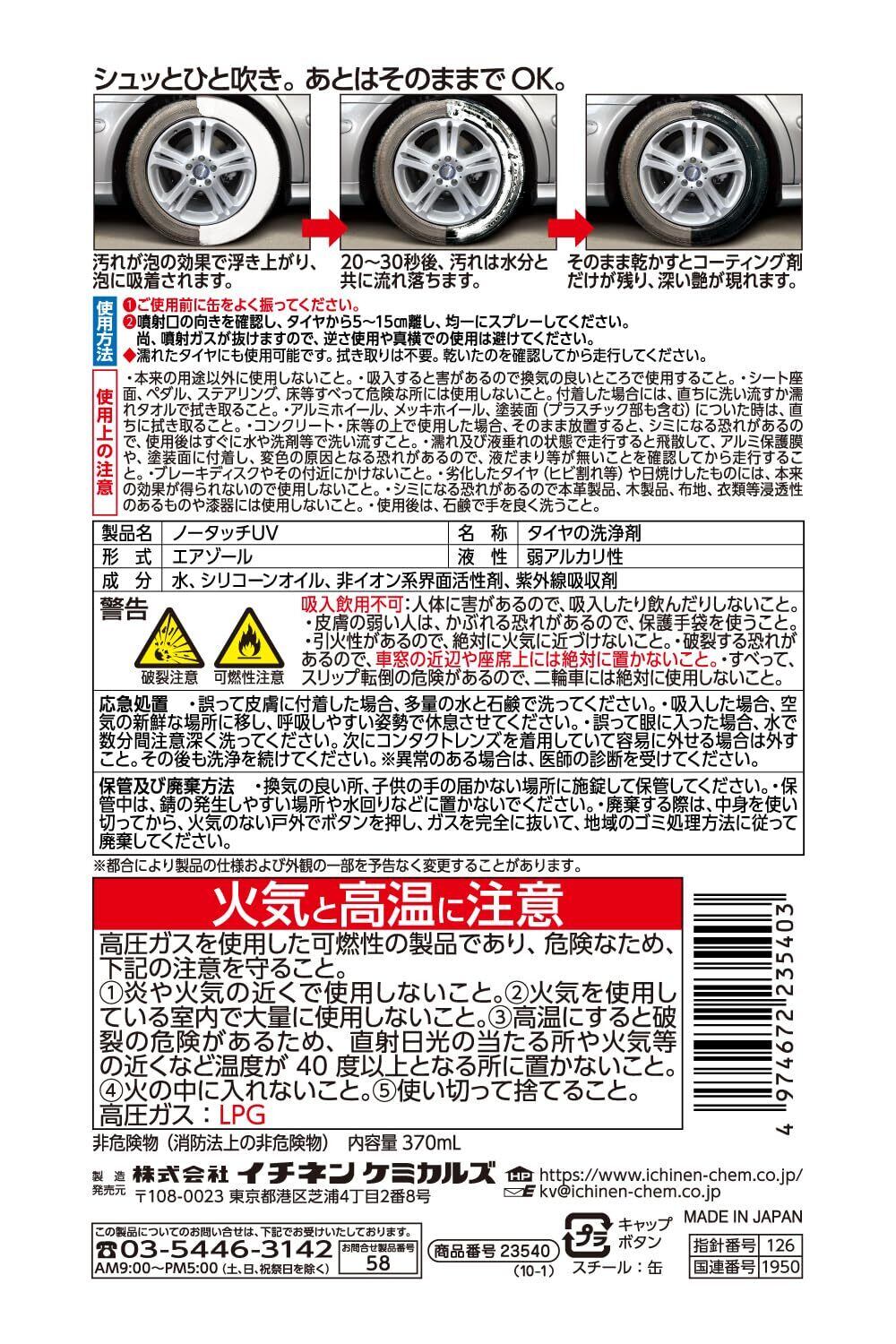 イチネンケミカルズ(Ichinen Chemicals) 車用 タイヤ艶出し&クリーナー クリンビュー ノータッチUV(2本パック) 370ml×2 23511