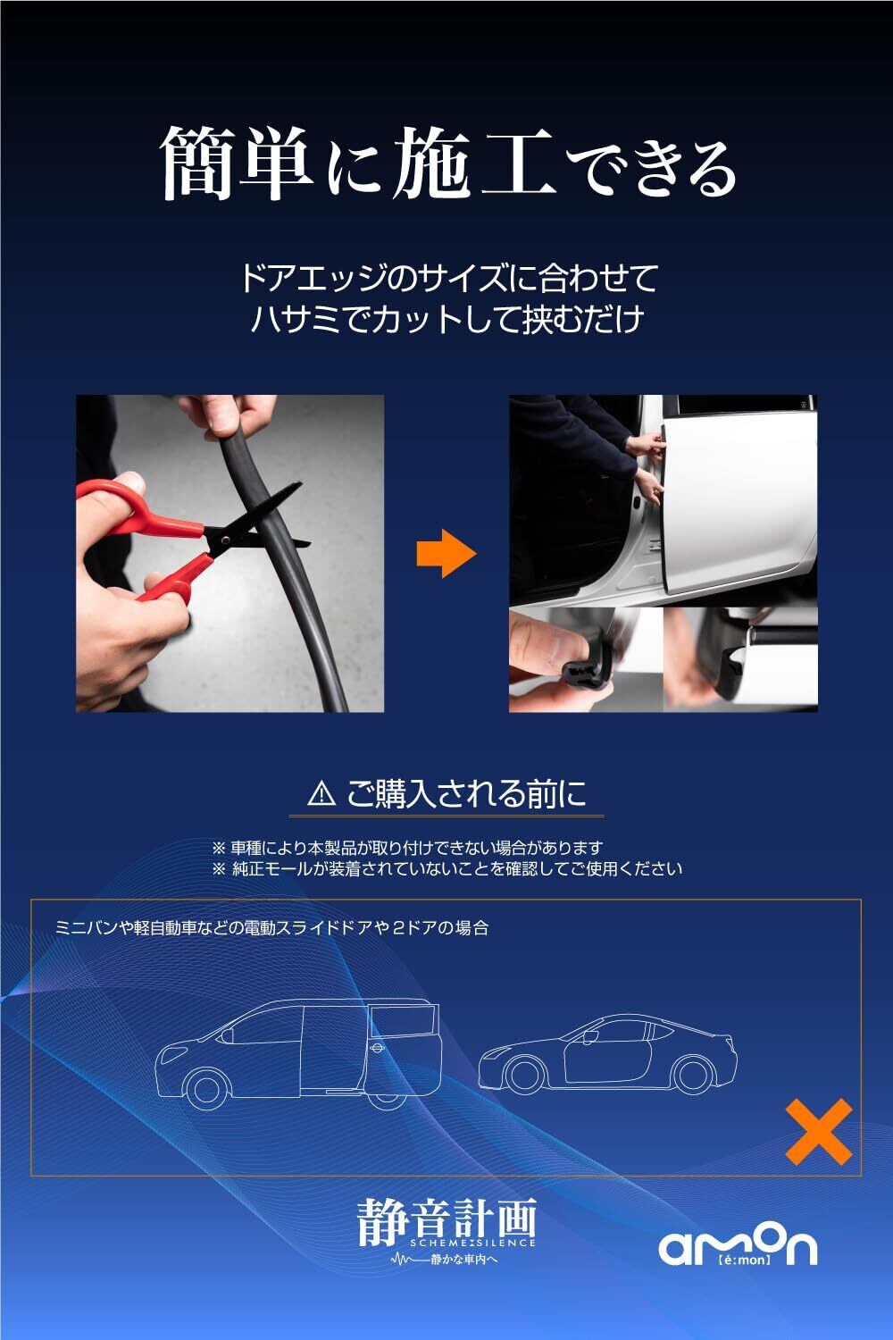 エーモン(amon) 静音計画 風切り音防止モール(ドア2枚分) すき間風の低減 静かな車内 ドアエッジに挟むだけ 遮音 約2.1m 4951