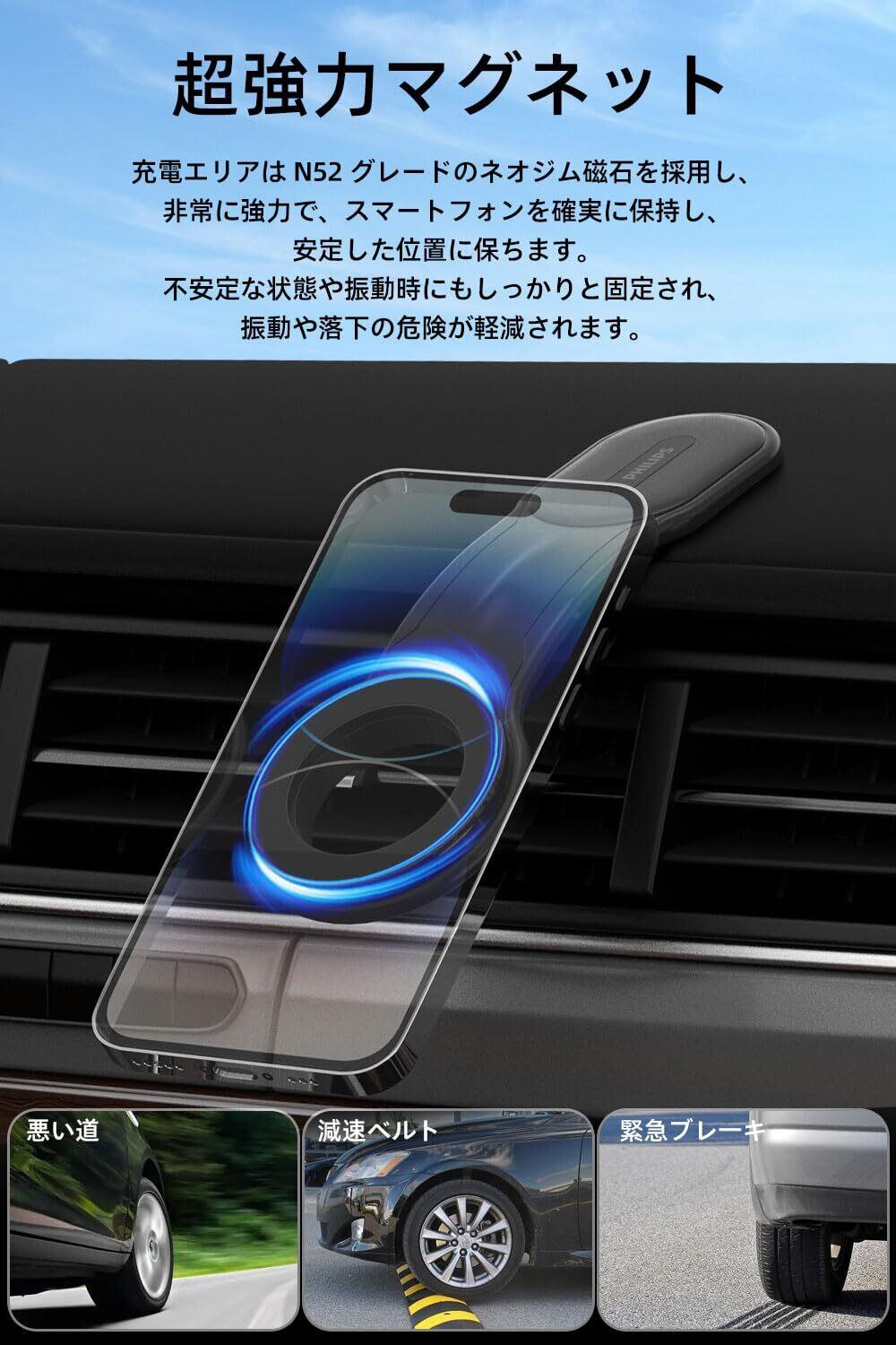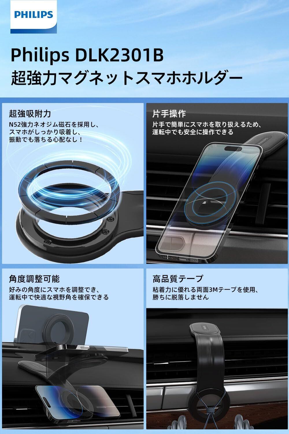 Philips (フィリップス) 車載スマホホルダー マグネット magsafeホルダー 超強力吸着 携帯ホルダー 自由調整 片手操作 車用ホルダー 3M粘着テープ 繰り返し利用可能 カー用品 全機種対応 DLK2301B