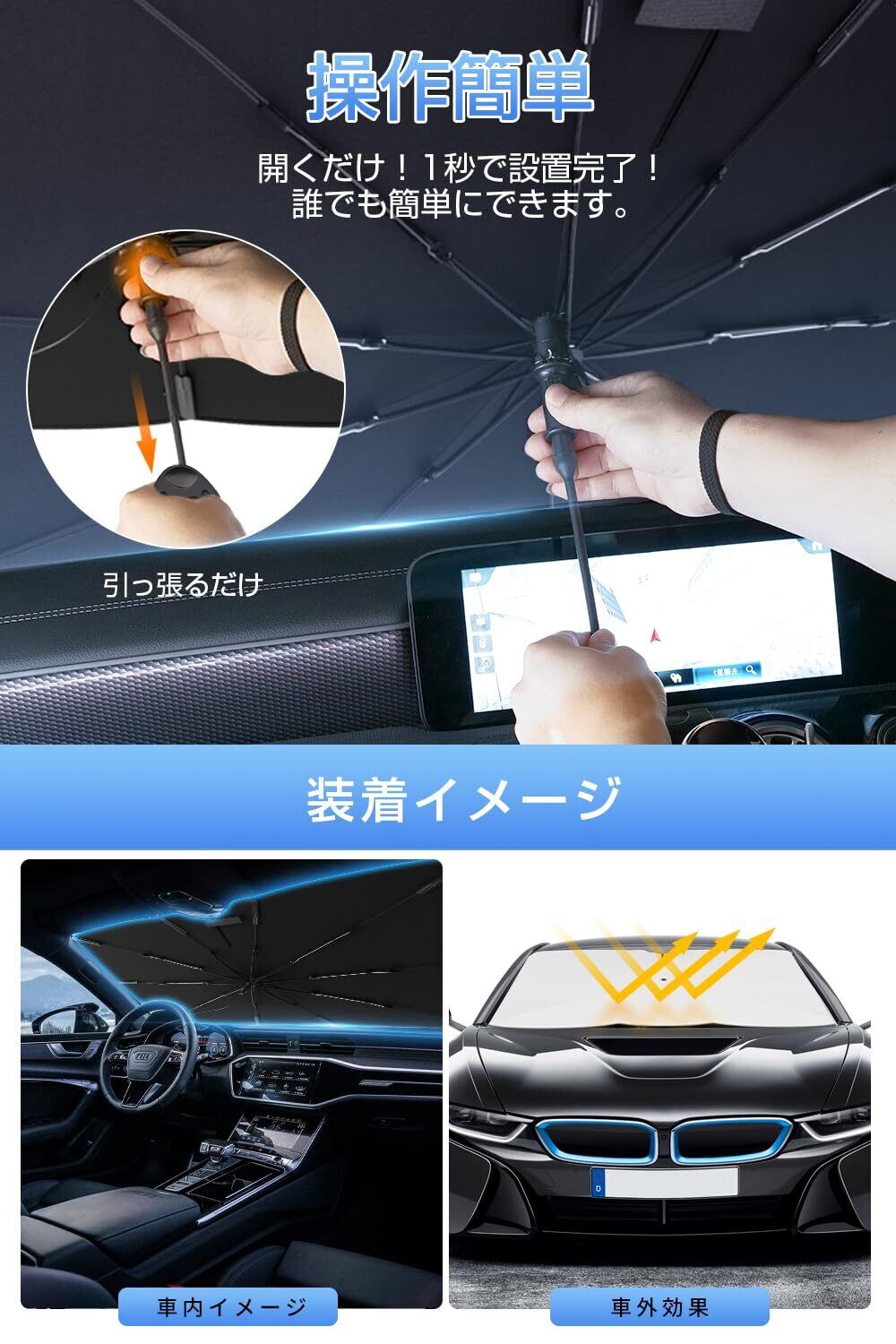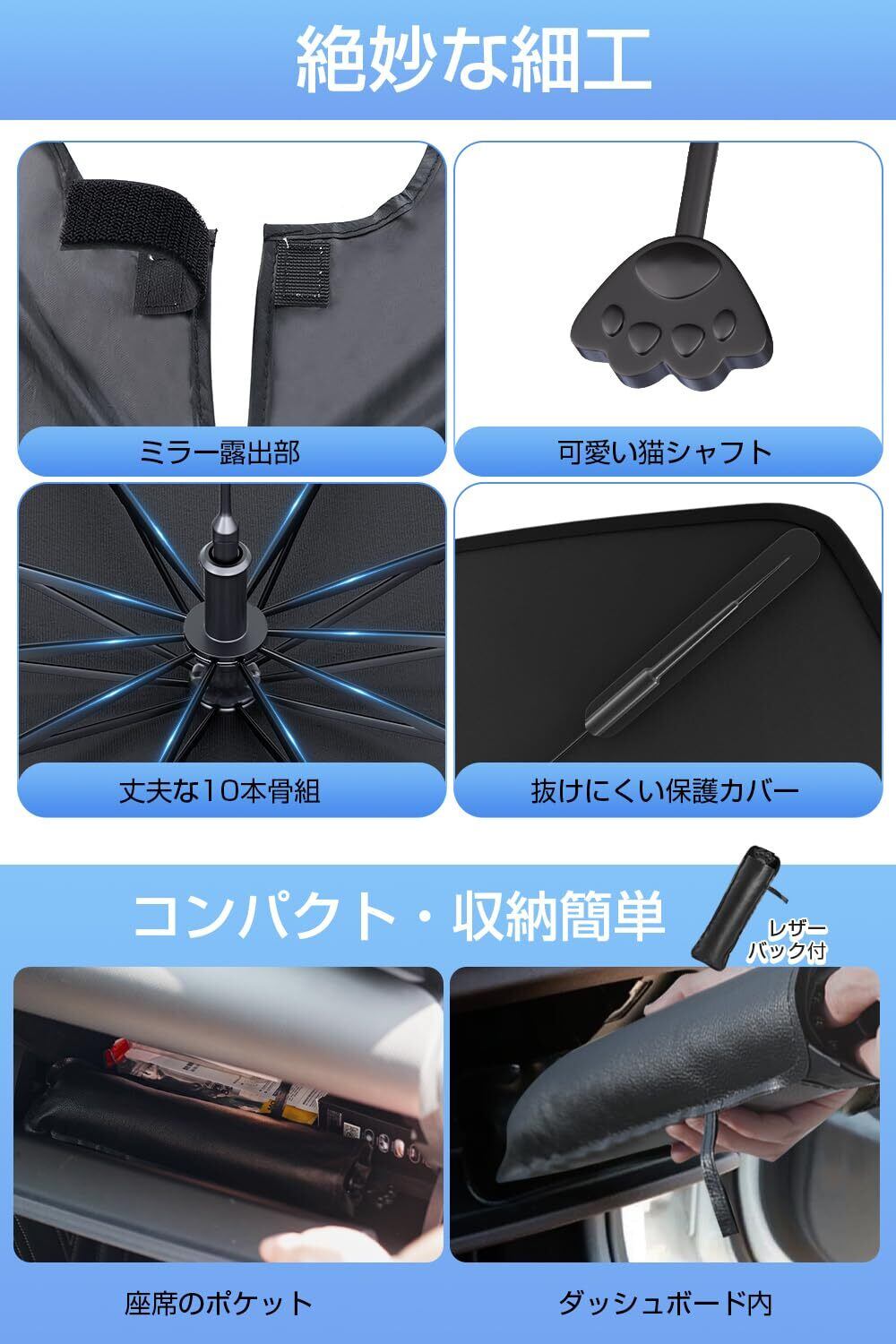 【新設計 完全フィット】 車用サンシェード フロント 360°折れる中棒 12層ナノ断熱素材 傘型 折りたたみ式 サンシェード 車用 遮光 遮熱 UVカット 紫外線遮蔽 取付簡単 バックミラー開き口 棒なし TPU中棒設計 内装を傷つけない 強化10本骨 日焼け対策 車中泊 仮眠 暑さ対策 収納ポーチ付き 10cm露先が折れる可能 ワンサイズでほぼ全車種に適用
