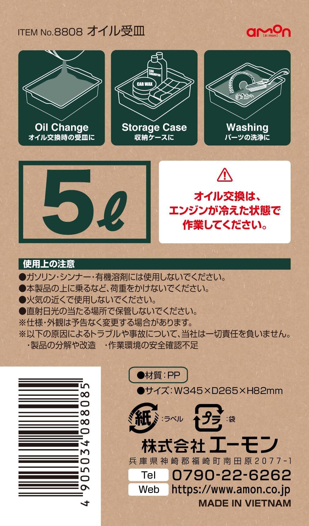 エーモン(amon) オイル受皿 5L W345×D265×H82mm オイル交換時の受皿に 収納ケースとして パーツの洗浄に 8808