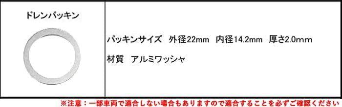 【パッキンサイズ・材質形状】外径22mm 内径14.2mm 厚さ2.0mm アルミワッシャ ※ドレンボルトM14に適合します。
