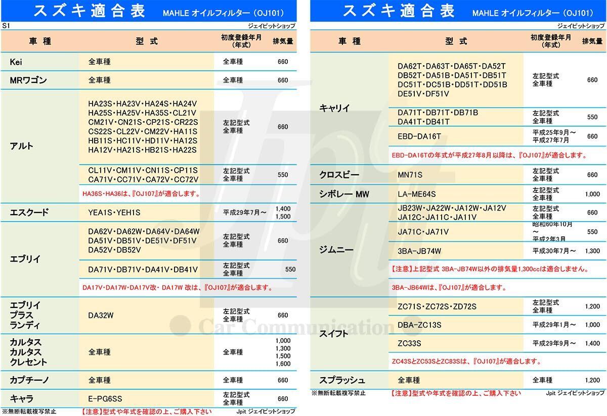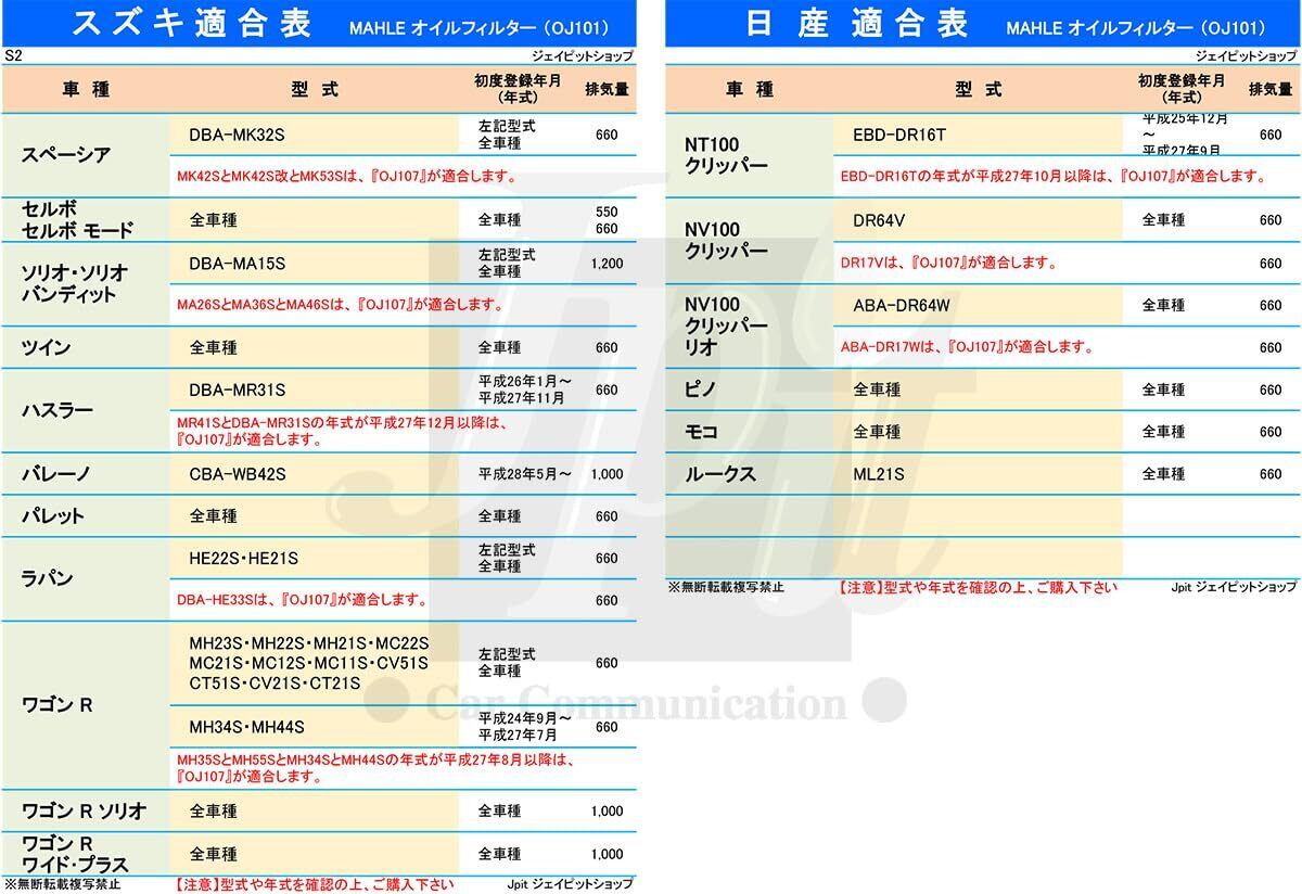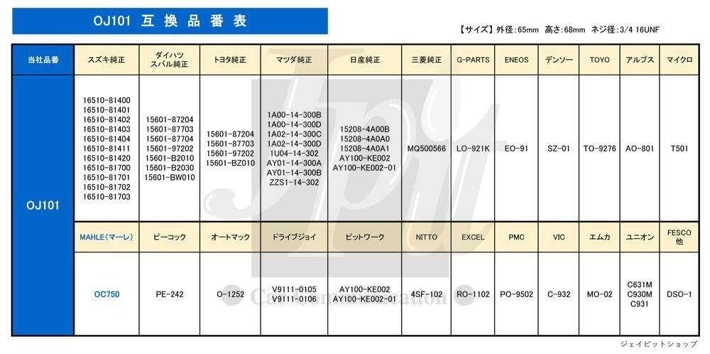 【セット内容】スズキ・スバル・ダイハツ・トヨタ・日産・三菱・マツダ用のオイルフィルター「品番OJ101」が10個【注意】画像適合表の型式や初度登録年月(車検証に記載)の適合諸条件等をご確認の上、ご購入ください。