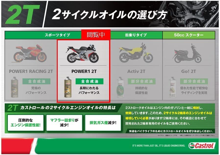 この機会に、Castrol POWER1 2T FDを活用して、バイクのエンジンをしっかりサポートし、充実したバイクライフをお楽しみください!