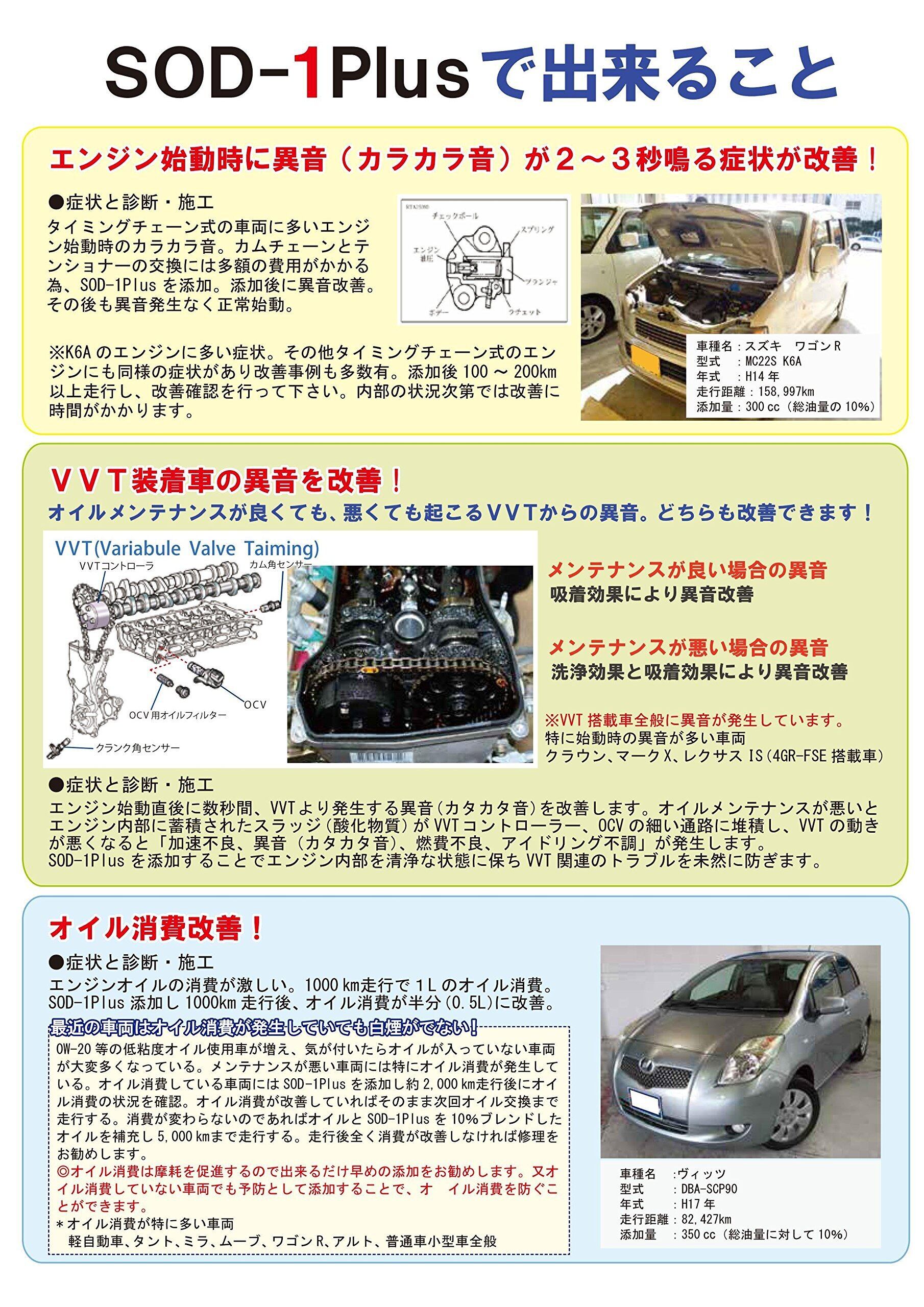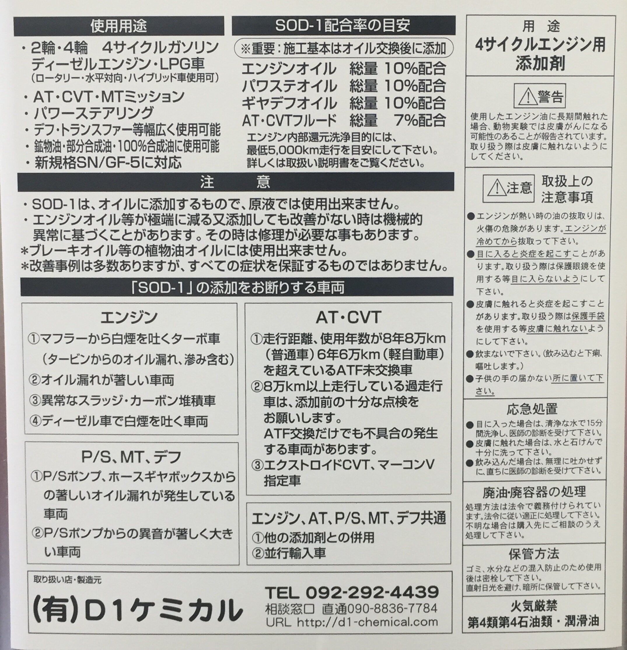 定期的なメンテナンスとして、ぜひ「D1ケミカル エステル系オイルメンテナンス剤SOD-1Plus」をお試しいただき、エンジンをしっかりと守り、快適な走行をお楽しみください!
