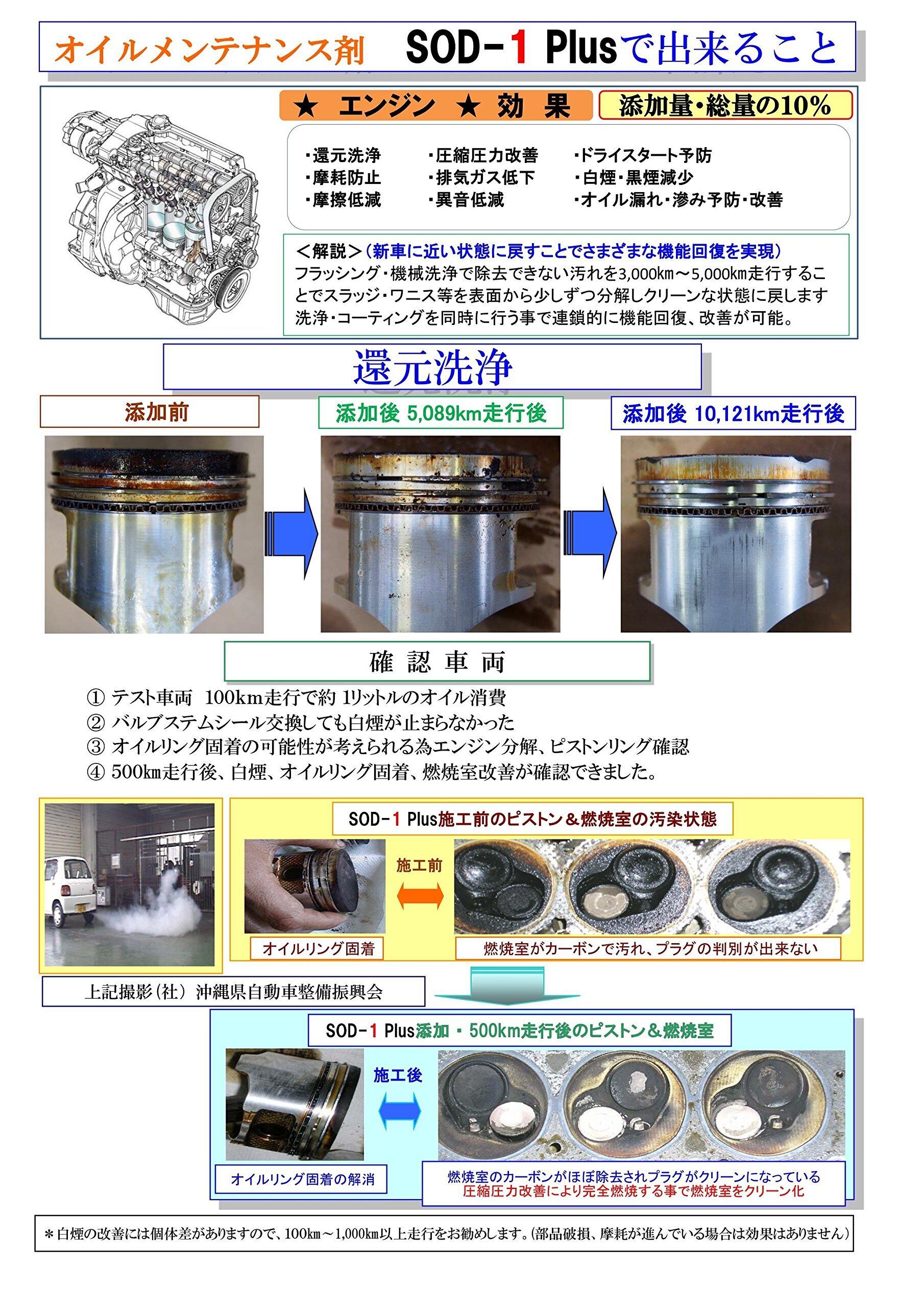 排気ガスのCO、HC低下、燃費の改善、ローコストで各潤滑油に関わるトラブルを解消する事からまさに幅広い意味でのエコオイルと言えます。