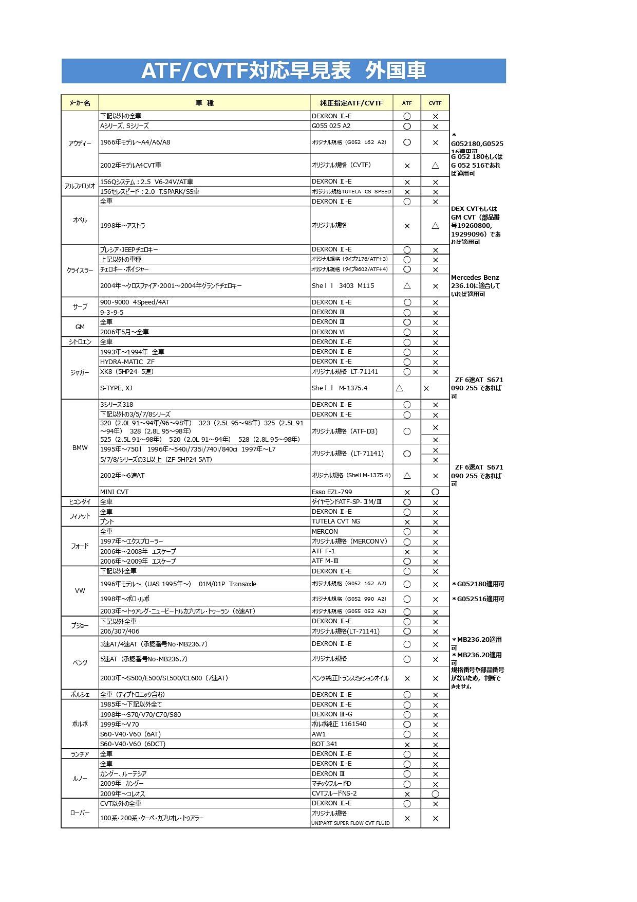 用途:CVTF(コンティニュアスリーバリアブル トランスミッション フルード)