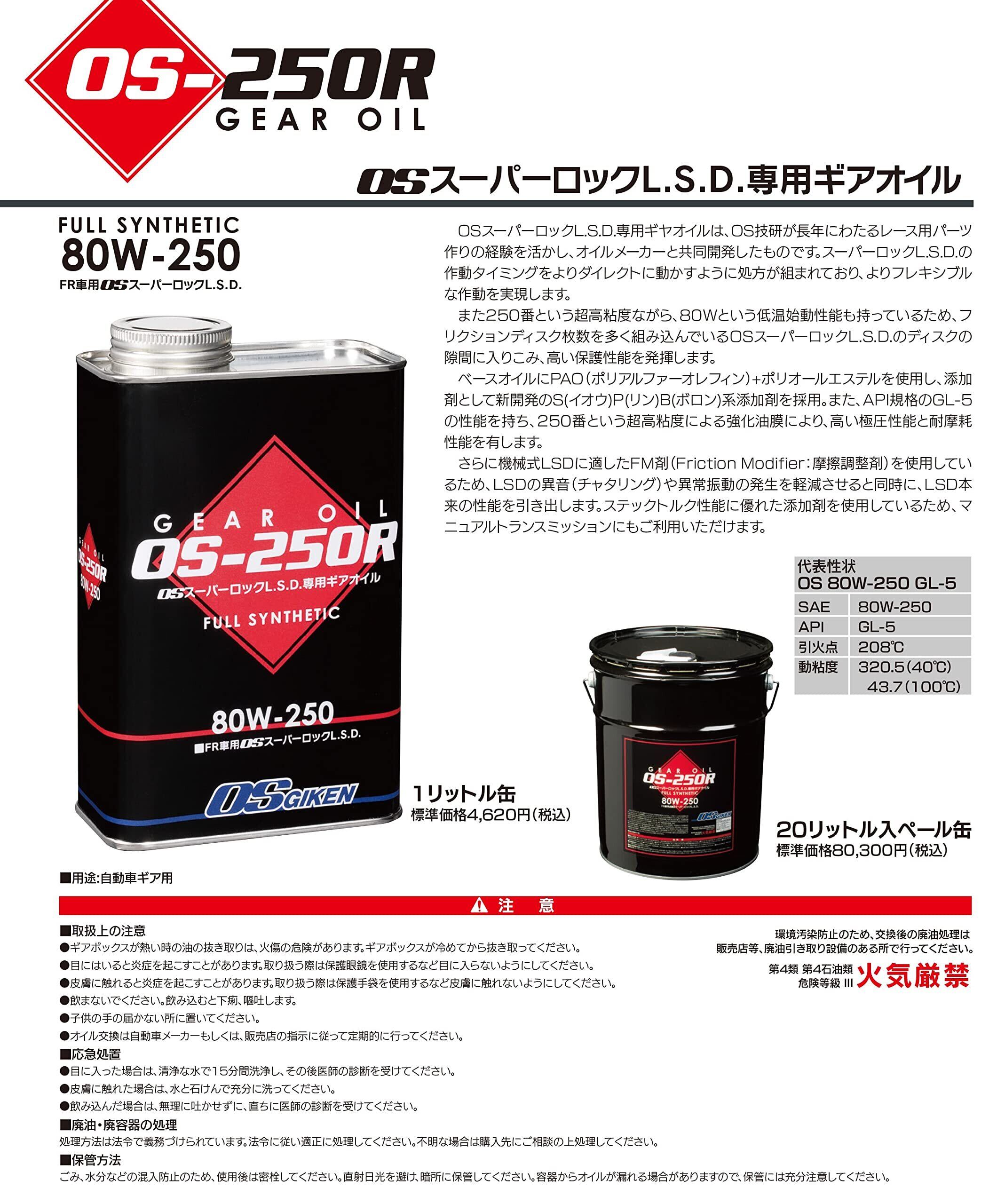 定期的なメンテナンスとして、「LSD GEAR OIL OS-250R」をぜひご利用いただき、大切な愛車の性能をいつまでも維持していきましょう!
