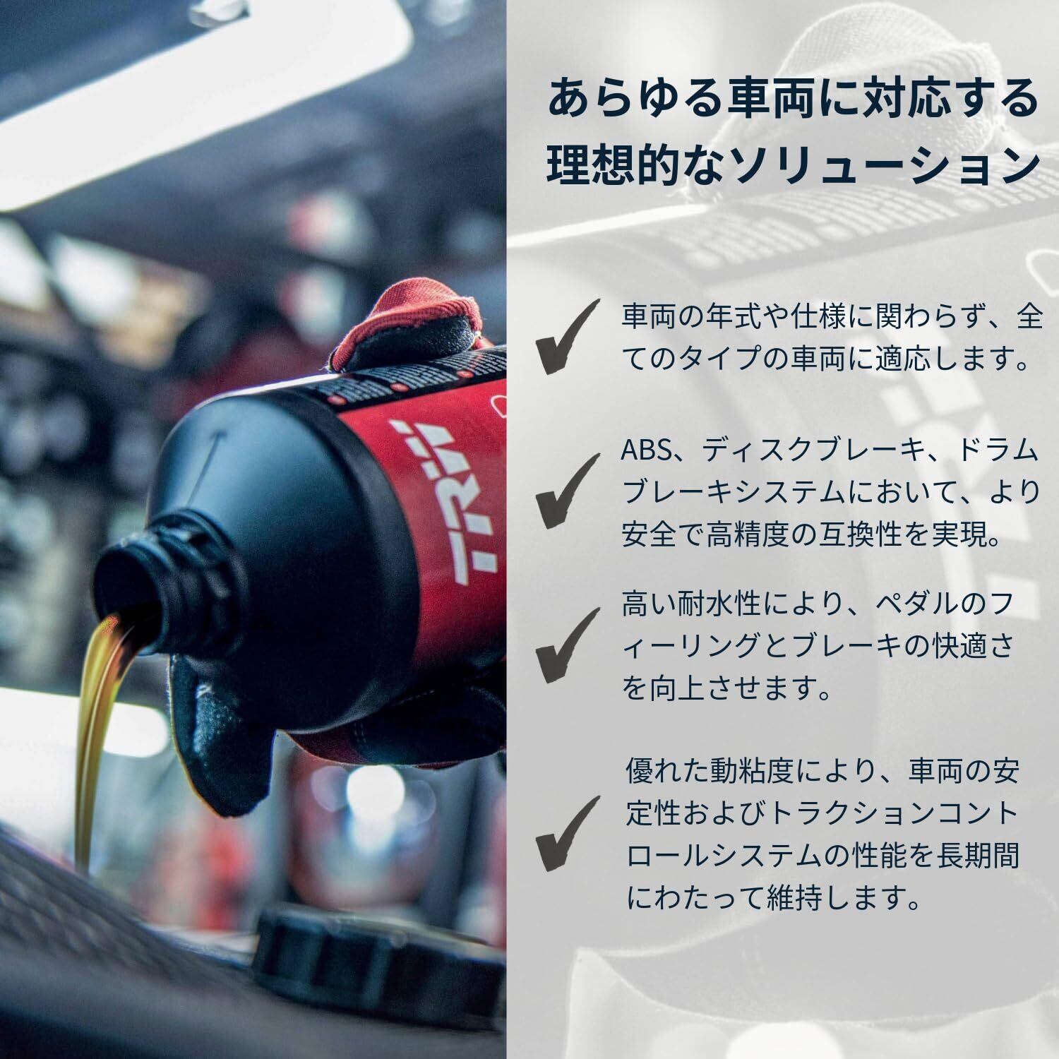 ◆TRW ブレーキフルードDOT5.1を使⽤することで、安全で信頼性の⾼いブレーキングパフォーマンスを実現し、安⼼してドライブを楽しむことができます。